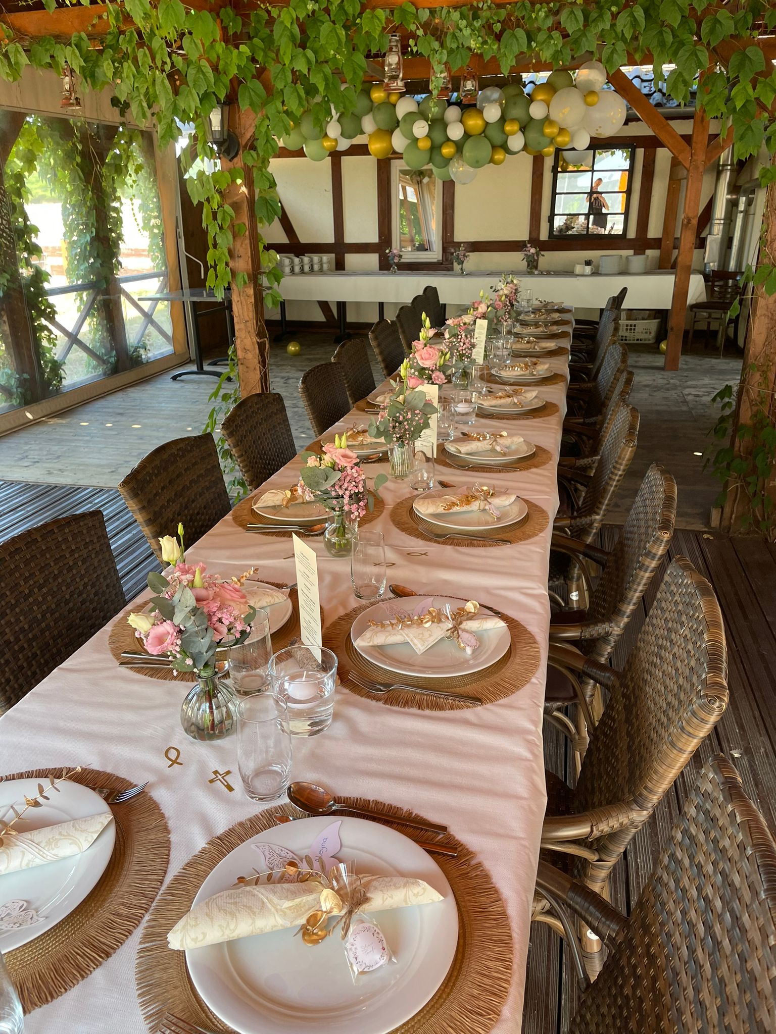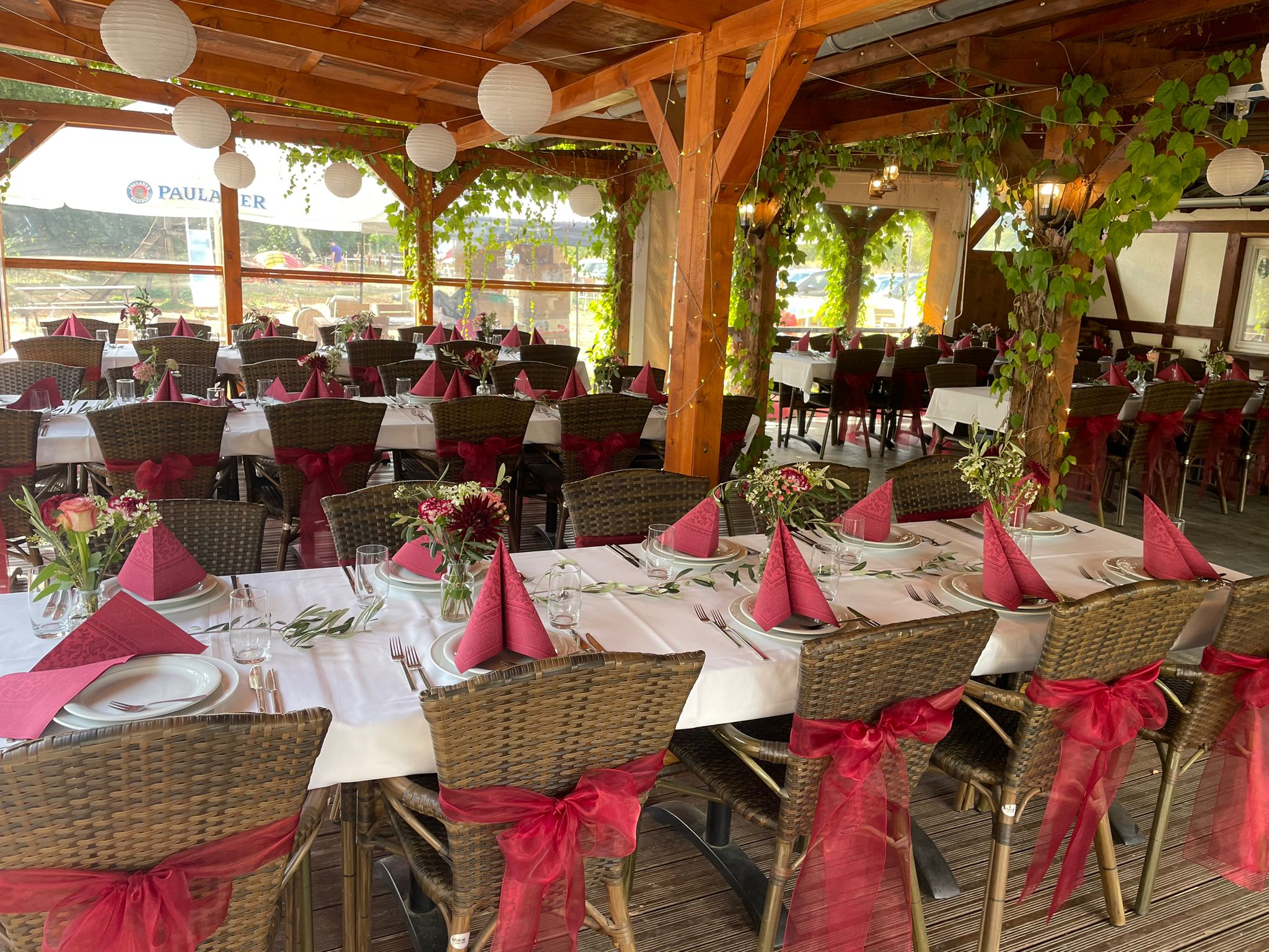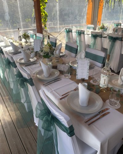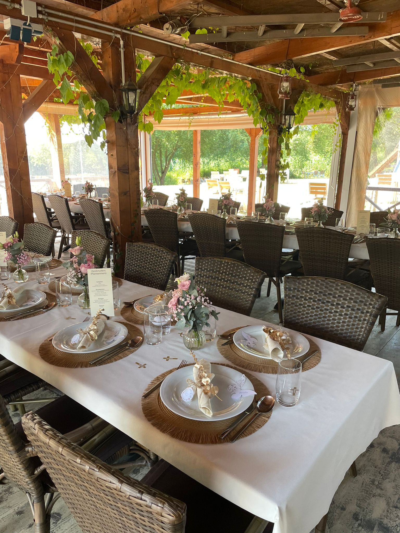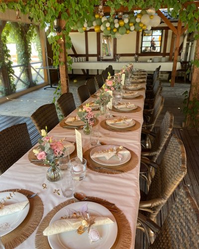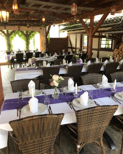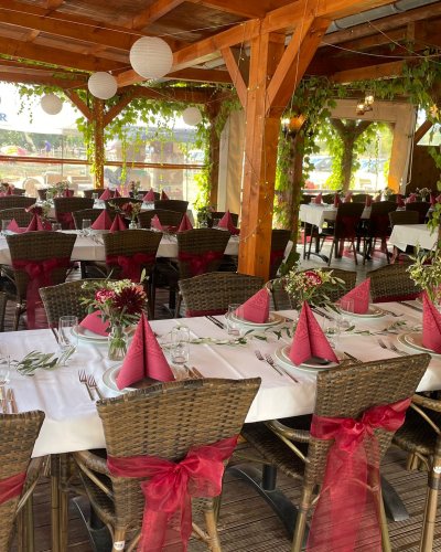 Spend balmy summer evenings with your friends in our wine arbor. Celebrate under wild wine in a romantic atmosphere and experience an unforgettable evening. The Weinlaube offers space for up to 90 people and can be rented throughout the warm season.